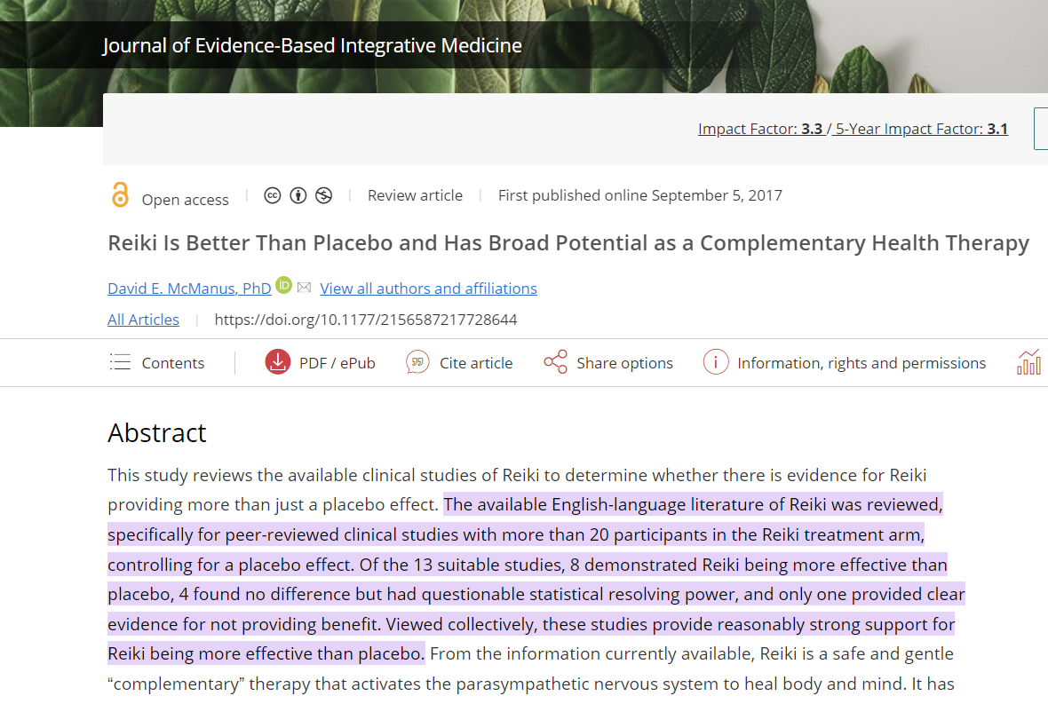 Reiki has been found to decrease stress in the body and activate the parasympathetic nervous system. This is a thorough double-blind study which includes a placebo.